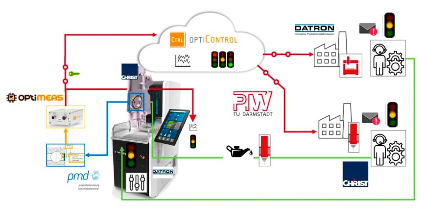 Das entstehende Ökosystem basiert auf einem durchgängigen Datenkonzept vom Sensor, über das Edge Device bis hin zur Verarbeitung in der Cloud und soll neue Geschäftsmodelle ermöglichen. Ziel dieser Geschäftsmodelle ist es, für alle Stakeholder die Kosten zu senken, die Qualität zu verbessernund zu einer nachhaltigen Steigerung der Material-, Ressourcen- und Energieeffizienz beizutragen. Das Projektkonsortium besteht neben dem PTW aus den Projektpartnern optiMEAS GmbH, Christ Feinmechanik GmbH & Co. KG, Datron AG und dem Fachgebiet pmd der TU Darmstadt.